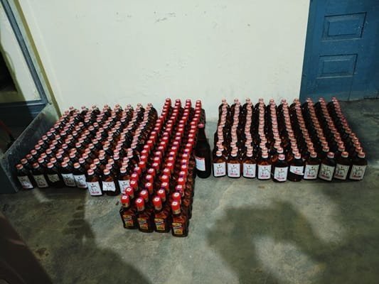 कार्यवाही के दौरान नॉन ड्यूटी पेड (मध्य प्रदेश एवं तेलंगाना विक्रय हेतु कुल 66.17 बल्क लीटर 273 नग गोवा स्पेशल व्हिस्की, 84 नग मैकडॉवेल्स नंबर 1 व्हिस्की, 7 नग रॉयल स्टैग डीलक्स व्हिस्की प्रति नग 180 उस 1 नग किंग फिशर बियर 650 उस ड्यूटी पेड कुल 31.50 बल्क लीटर 3 नग रॉयल स्टैग डीलक्स व्हिस्क, 11 नग ब ब्लैक, 16 नग फ्रंटलाइन व्हिस्की, 8 नग वाइट एंड ब्लू व्हिस्की, 4 नग आफ्टर डार्क व्हिस्की प्रति नग 750 लीटर प्राप्त किया गया।