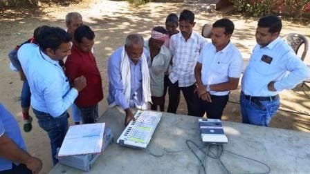 वार्डों में ईवीएम का प्रदर्शन करके लोगों मतदान के लिए किया जा रहा जागरूक