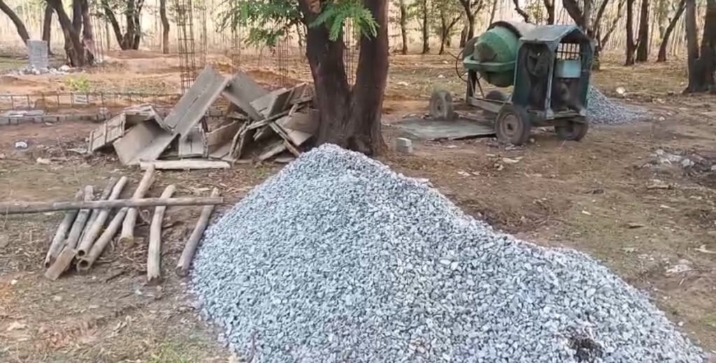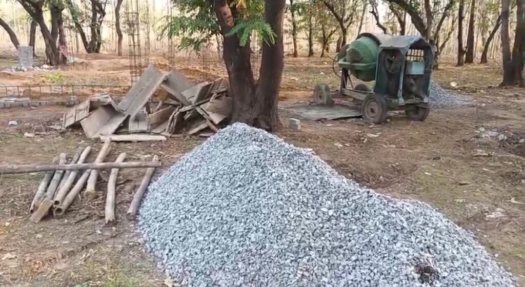 सूत्रों के अनुसार, बीते कुछ दिनों से यहां पेड़ काटे जा रहे हैं और रात के वक्त भारी मात्रा में रेत, गिट्टी और निर्माण सामग्री गिराई जा रही है। मौके पर मिक्चर मशीन भी देखी गई है, जिससे साफ जाहिर है कि स्थायी निर्माण की तैयारी चल रही है। बीम खड़े किए जा चुके हैं और कब्जे की गति तेज हो गई है।