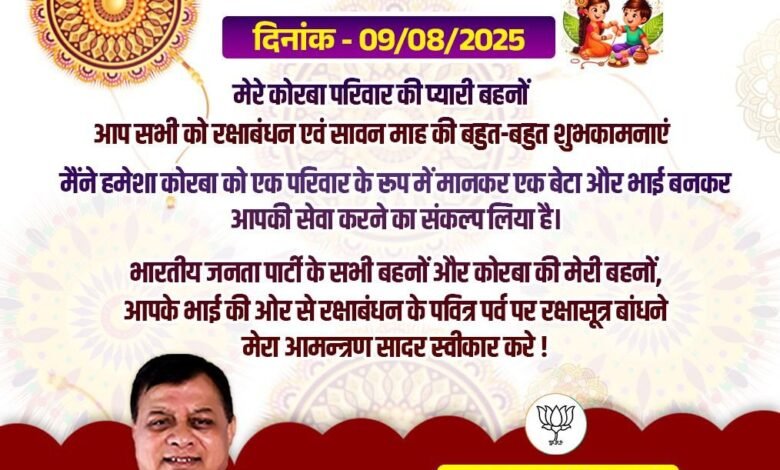 रक्षाबंधन पर ’बहनी मन संग राखी के तिहार’ का आयोजन, मंत्री श्री देवांगन ने कोरबा की बहनों को भेजा आमंत्रण