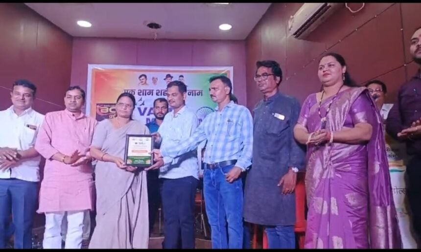 कोरबा(ग्रामयात्रा छत्तीसगढ़ )। : स्वतंत्रता दिवस के अवसर पर बीसीसी न्यूज, कोरबा द्वारा “एक शाम शहीदों के नाम” कार्यक्रम का आयोजन कोरबा शहर स्थित गीतांजलि भवन में किया गया। इस कार्यक्रम में महापौर संजू देवी राजपूत मुख्य अतिथि के रूप में उपस्थित रहीं, जबकि नरेंद्र देवांगन विशिष्ट अतिथि थे।