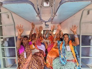 राजनांदगांव (ग्रामयात्रा छत्तीसगढ़ )। श्री रामलला दर्शन अयोध्या धाम योजना के तहत अयोध्या के लिए पहली बार राजनांदगांव रेल्वे स्टेशन से तीर्थयात्री स्पेशल टे्रन रवाना होने पर तीर्थयात्रियों के चेहरे पर खुशियां झलक रही थी। श्री रामलला दर्शन के लिए तीर्थयात्री स्पेशल टे्रन के एस-6 में बैठे राजनांदगांव की श्रीमती सुभिया देवांगन, श्रीमती कुमारी बाई साहू, श्रीमती गिरजा बाई, श्रीमती मेहतरीन बाई, श्रीमती मिना बाई, श्रीमती ढेला बाई, श्रीमती सुशीला बाई सहित अन्य महिलाओं ने खुशी जाहिर की।