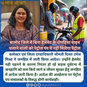 बालोद जिले के पेट्रोल पंपों में बिना हेलमेट के दो पहिया वाहन चालकों को नही मिलेगा पेट्रोल