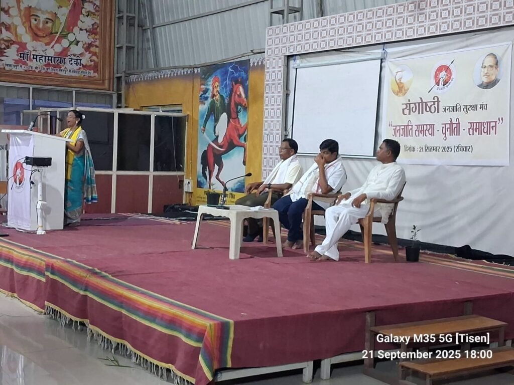 मुख्य वक्ता प्रकाश उइके ने आदिवासी समाज की महिलाओं, शिक्षा और स्वास्थ्य से जुड़ी चुनौतियों पर प्रकाश डालते हुए कहा कि धर्मांतरण के कारण आदिवासी समाज अपने अधिकारों से वंचित हो रहा है।