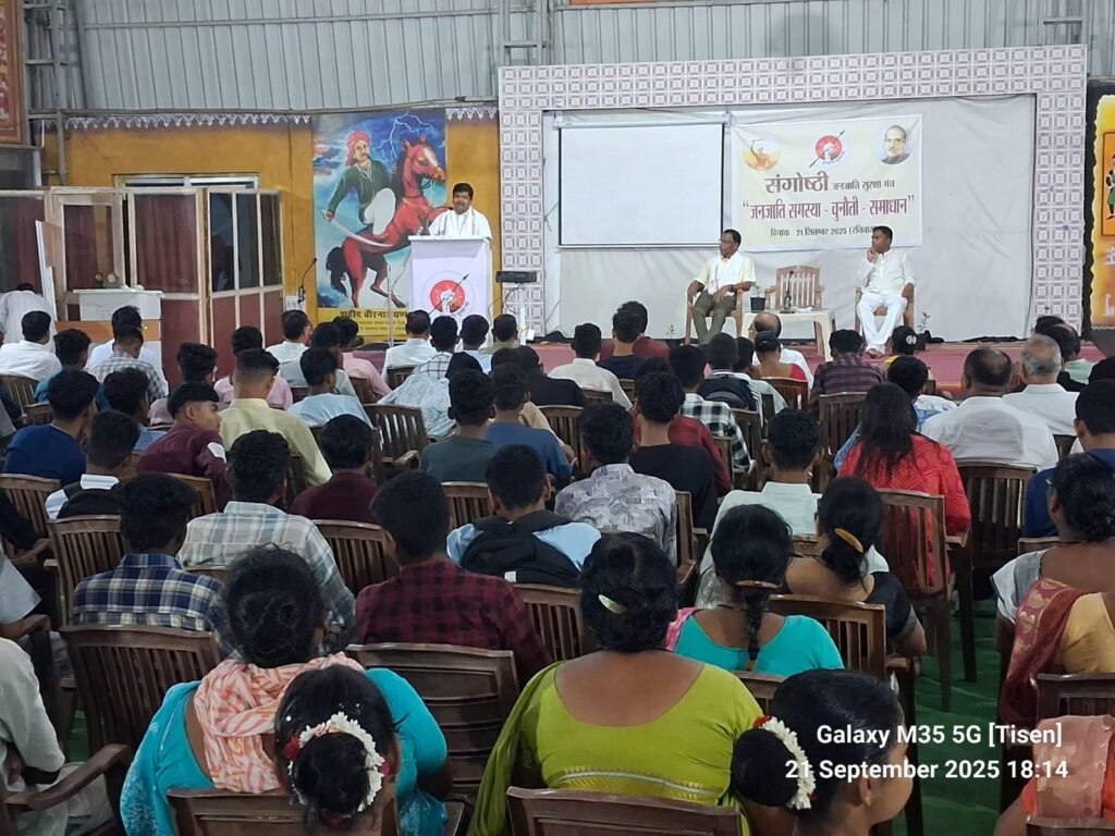 मुख्य वक्ता प्रकाश उइके ने आदिवासी समाज की महिलाओं, शिक्षा और स्वास्थ्य से जुड़ी चुनौतियों पर प्रकाश डालते हुए कहा कि धर्मांतरण के कारण आदिवासी समाज अपने अधिकारों से वंचित हो रहा है।