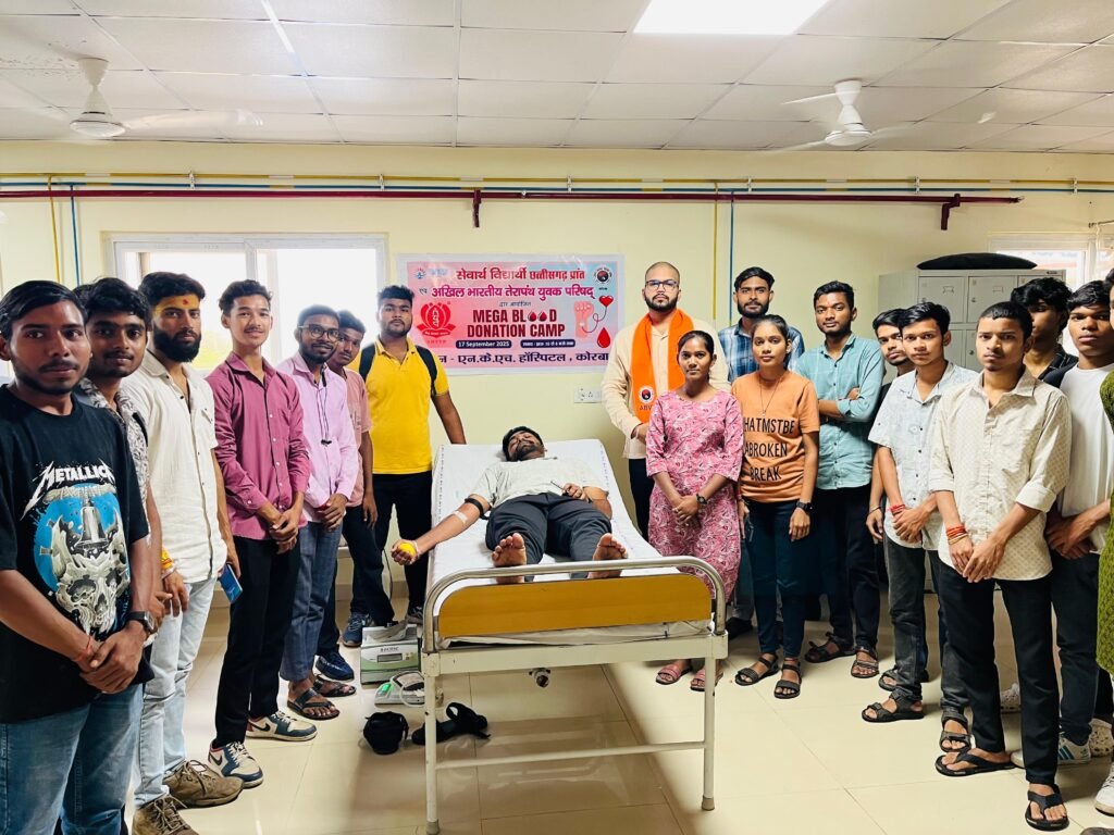 कोरबा (ग्रामयात्रा छत्तीसगढ़ )।  अखिल भारतीय विद्यार्थी परिषद कोरबा जिला के द्वारा मेगा ब्लड डोनेशन कैम्प चलाया गया NKH हॉस्पिटल मे जिसमें मुख्य रूप से कोरबा जिला संयोजक निहाल सोनी जी, कोरबा इकाई नगर मंत्री प्रवीण साहू जी, नगर सहमंत्री अमित शर्मा जी राहुल महंत जी, महाविद्यालय प्रमुख आदि सोनी जी, सह महाविद्यालय प्रमुख शिवम सिंह राजपूत जी, सहकोष प्रमुख हेमंत राजवाड़े जी एवं अन्य साथी उपस्थित थे। यह एक सामूहिक राष्ट्रीय अभियान है जिसकी पहल अखिल भारतीय तेरापंथ युवक परिषद (ABTYP) ने की है और इसमें अखिल भारतीय विद्यार्थी परिषद (ABVP) भी राष्ट्रीय स्तर पर सहयोगी है।