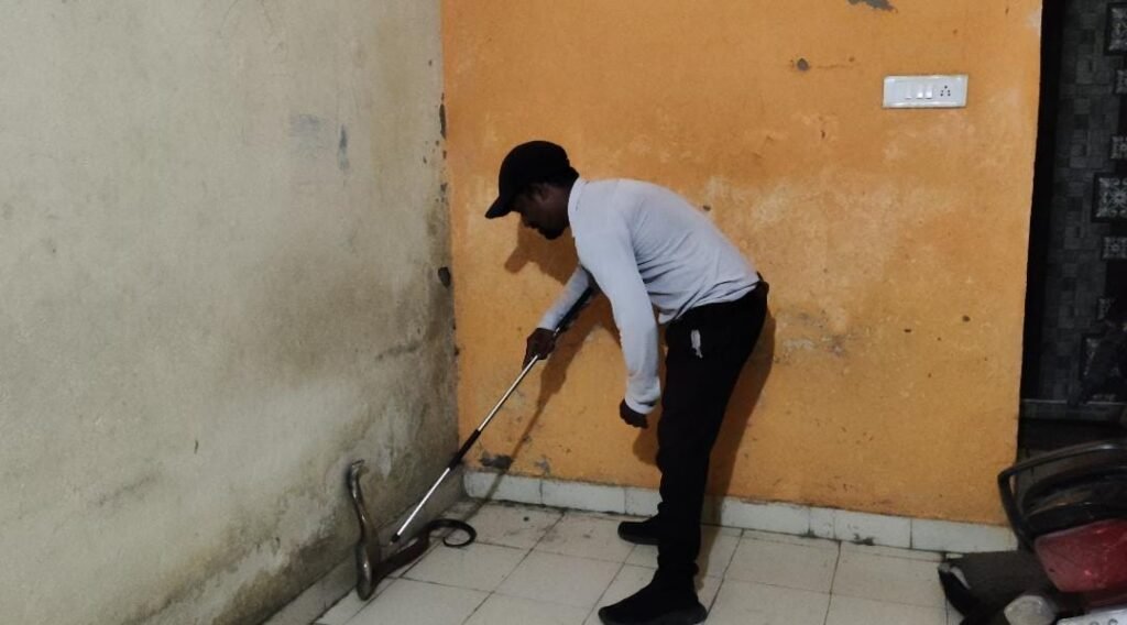 सूचना मिलते ही जितेंद्र सारथी एवं टीम मौके पर पहुँची फिर बंद घर के ताले को तोड़ा गया फिर सामने फन फैलाए बैठे नाग को देख कर लोगों के हाथ पैर फूल गए फिर सावधानीपूर्वक पूर्वक रेस्क्यु टीम के सदस्य राजू बर्मन एवं शुभम ने सुरक्षित रेस्क्यू कर थैले में डाला तब जाकर सभी ने राहत भरी सांस लिया, इसके बाद उसे जंगल में छोड़ा गया, ताकि वह अपने प्राकृतिक आवास में लौट सके।