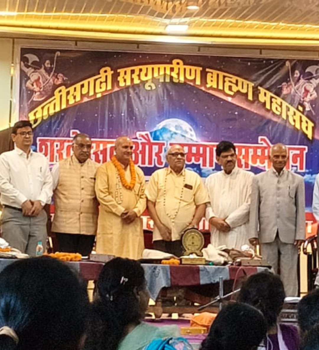 सीएसईबी पूर्व सीनियर क्लब कोरबा में परशुराम सेना कोरबा इकाई द्वारा छत्तीसगढ़ी सरयूपारिन ब्राह्मण महासभा का भव्य आयोजन किया गया। इस अवसर पर समाज के विभिन्न क्षेत्रों में उत्कृष्ट उपलब्धि प्राप्त विभूतियों को सम्मानित किया गया। कार्यक्रम में कोरबा जिले के साथ-साथ पूरे प्रदेश के प्रतिभाशाली समाजसेवी, शिक्षाविद् और विद्वान उपस्थित रहे।