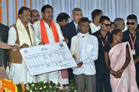 मुख्यमंत्री विष्णुदेव साय के हाथों बेमेतरा जिले के हितग्राही पूरन टंडन को मिला स्वामित्व कार्ड