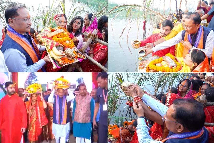 जशपुर। लोक आस्था और सूर्योपासना का महापर्व छठ पूजा पूरे देश में श्रद्धा, उत्साह और भक्ति के वातावरण में सम्पन्न हुआ। इसी कड़ी में छत्तीसगढ़ के मुख्यमंत्री विष्णु देव साय एवं उनकी धर्मपत्नी कौशल्या साय ने जशपुर जिले के कुनकुरी छठ घाट पर पहुंचकर व्रतियों के साथ उषा अर्घ्य अर्पित किया। मुख्यमंत्री ने इस अवसर पर प्रदेशवासियों के सुख, समृद्धि एवं मंगलमय जीवन की कामना की।