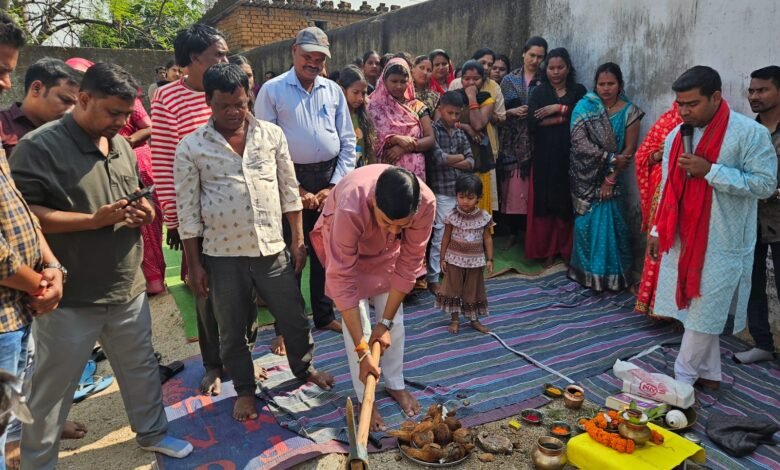 कोरबा। कोरबा नगर निगम के वार्ड क्रमांक 18 कोहड़िया अंतर्गत छोटे नर्सरी पारा में मध्य क्षेत्र आदिवासी विकास प्राधिकरण मद से ₹5 लाख की लागत से प्रस्तावित मंच निर्माण कार्य का विधिवत भूमिपूजन सम्पन्न हुआ।