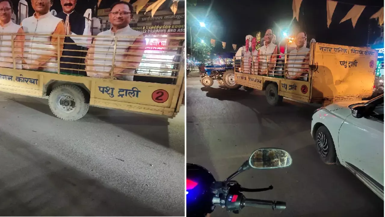 राज्योत्सव के कटआउट को काऊकेचर (पशु/कचरा वाहन) में ढोए जाने की घटना में अब वह सच सामने आने लगा है, जिसकी आशंका पहले दिन से जताई जा रही थी।