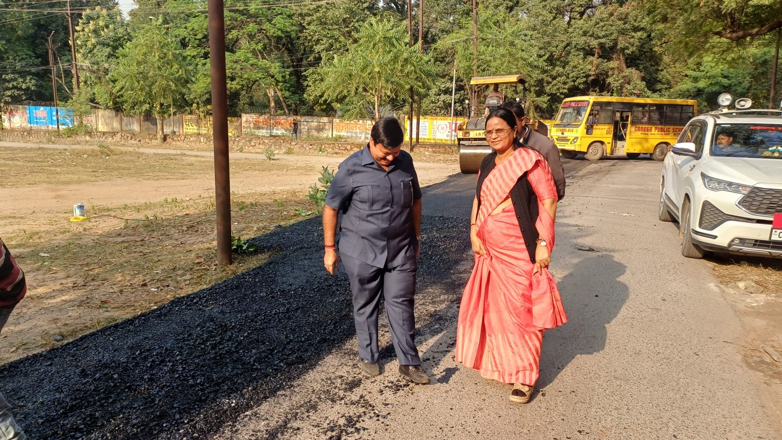 शाम करीब 4 बजे महापौर अचानक स्थल पर पहुंचीं, जहां सड़क चौड़ीकरण और मरम्मत का काम प्रगति पर था। उन्होंने मौके पर मौजूद अधिकारियों से कार्य की विस्तृत जानकारी ली और निर्माण की गुणवत्ता पर विशेष जोर दिया।