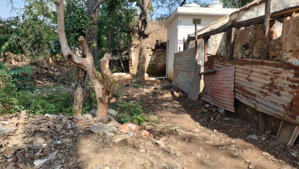 गढ़ कलेवा में शौचालय तक पहुंचने में बाधा बना खंडहर भवन, आगंतुकों को हो रही परेशानी