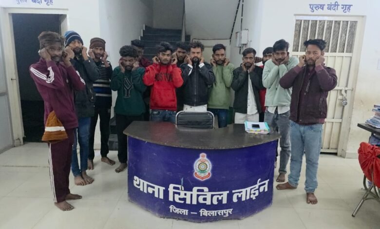 बिलासपुर – सिविल लाईन क्षेत्र के तैयबा चौक तालापारा क्षेत्र में 01 व्यक्ति धारदार हथियार के साथ पकडाया जिसके विरूध्द आर्म्स एक्ट की कार्यवाही तथा 08 व्यक्तियो के द्वारा थाना सिविल लाईन क्षेत्र में अशांति फैलाने पर उनके विरूध्द की गई प्रतिबंधात्मक कार्यवाही-