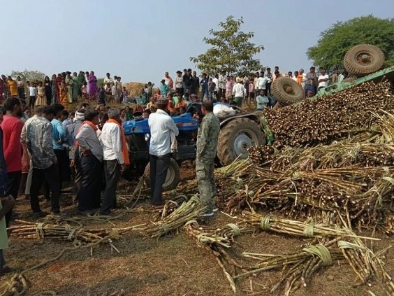 गन्ने से लदा ट्रैक्टर पलटा, किसान की मौके पर मौत