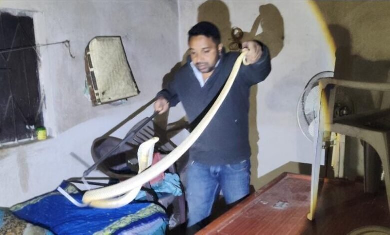 यह गांव शहर से लगभग 26 किलोमीटर दूर स्थित है। घटना रात्रि लगभग 10 बजे की है, जब घर के सदस्य सोने की तैयारी कर रहे थे। इसी दौरान घर के भीतर हलचल महसूस हुई और ध्यान से देखने पर सांप दिखाई दिया।