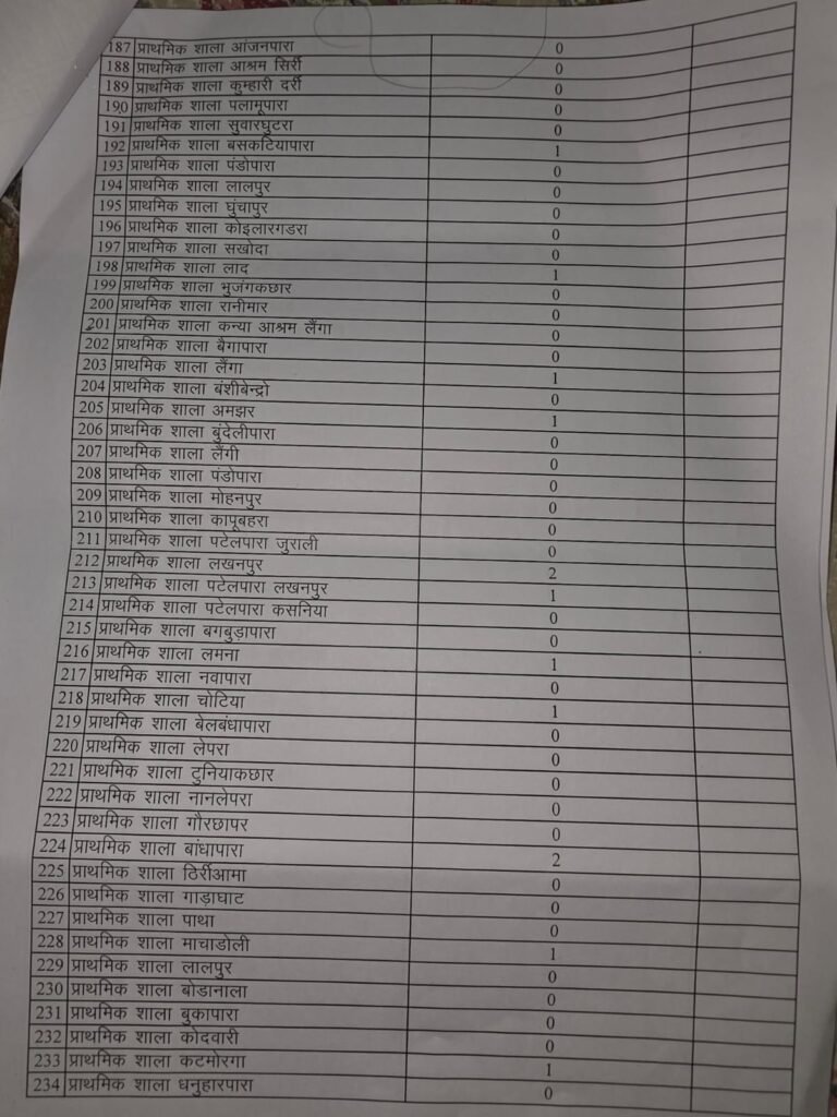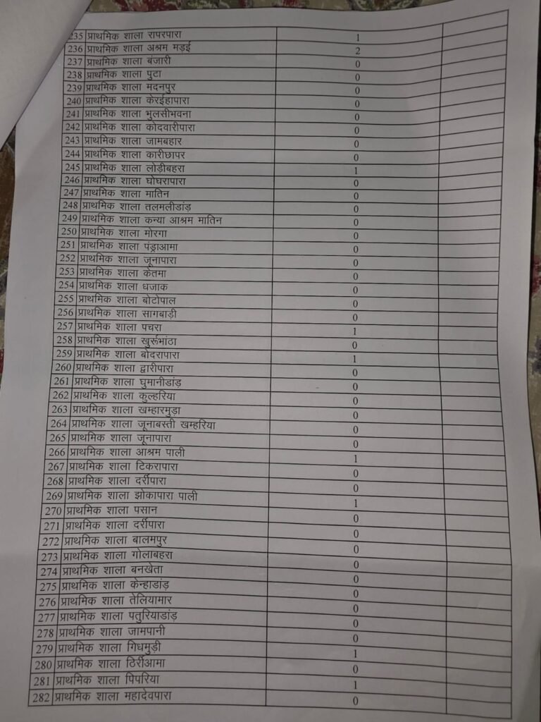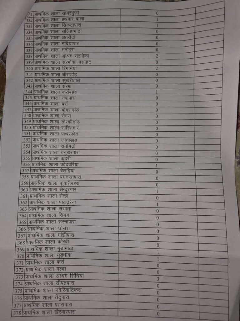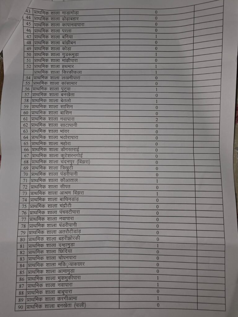 कसनिया,तनेरा एवं तुमान शामिल हैं। शासन स्तर से इन रिक्त पदों की पूर्ति के लिए शीघ्र कवायद की दरकार है। ताकि आकांक्षी ब्लॉक की शिक्षा अध्यापन व्यवस्था सुदृढ़ हो सके।