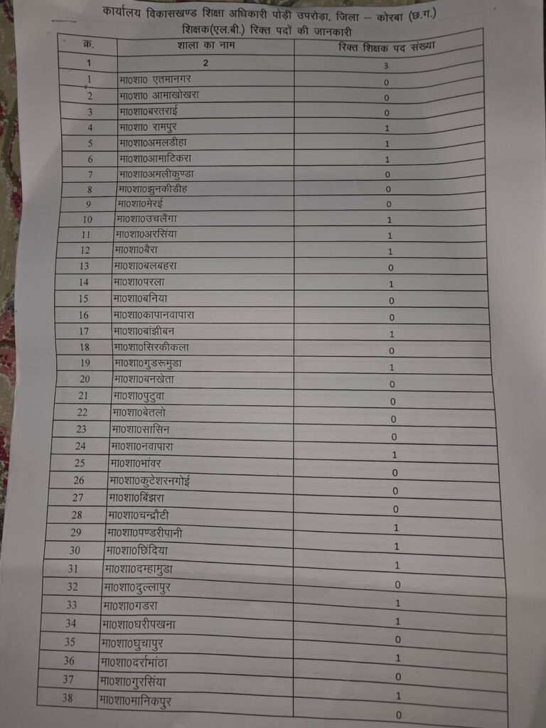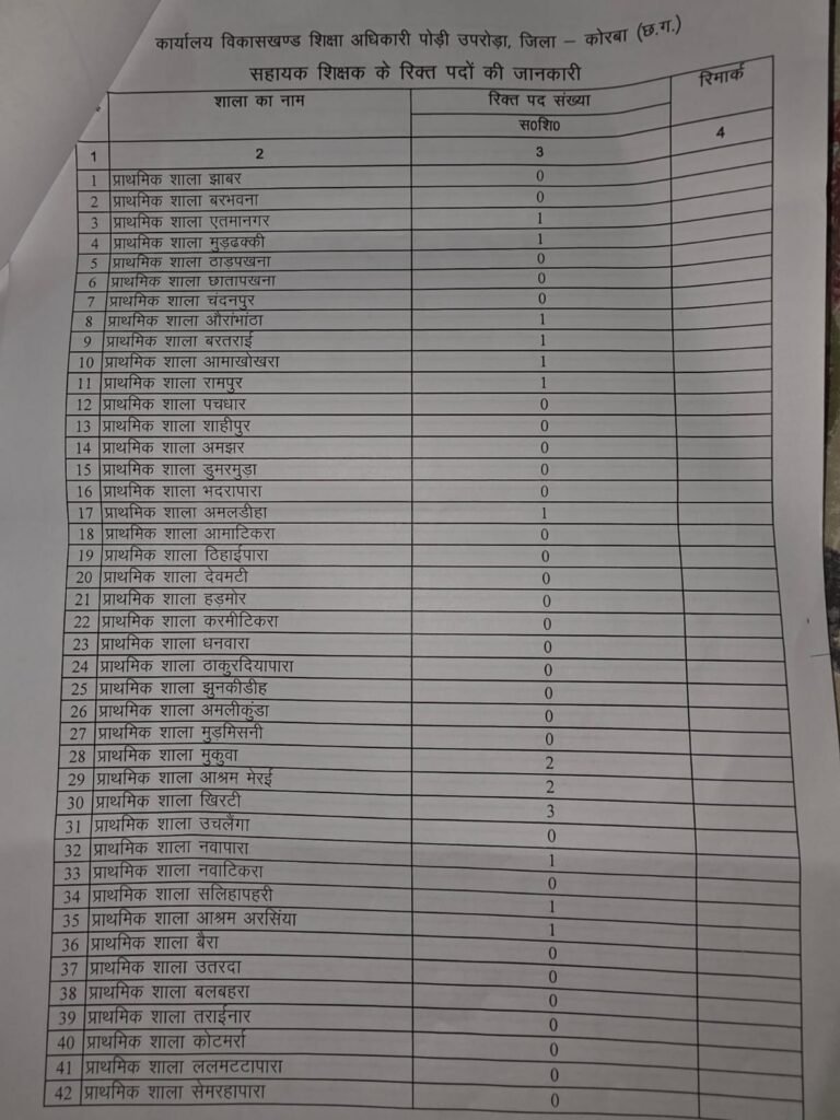 KORBA : आकांक्षी ब्लॉक पोंडीउपरोड़ा में शिक्षकों की कमी से डगमगा रही प्राथमिक शिक्षा व्यवस्था
