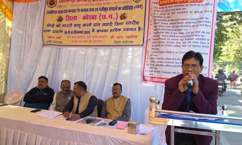 रिकार्ड रूम बंद होने आवक जावक शाखा बंद होने से अधिवक्ताओं से लेकर कई आमजन परेशान दिखे। इधर छत्तीसगढ़ कर्मचारी अधिकारी फेडरेशन जिला इकाई कोरबा के आह्वान पर जिले के कर्मचारी एवं अधिकारियों द्वारा 11 सूत्रीय मांगों को लेकर तानसेन चौक कोरबा में आयोजित आंदोलन के दूसरे दिन भी शासन की कर्मचारी विरोधी नीतियों के विरुद्ध शांतिपूर्ण अनुशासित एवं लोकतांत्रिक ढंग से अपना विरोध दर्ज कराया, आंदोलन में कर्मचारियों ने एकजुट होकर अपनी जायज मांगों को लेकर आवाज बुलंद की। फेडरेशन द्वारा प्रमुख रूप से निम्न मांगों पर जोर दिया गया— _केंद्रीय कर्मचारियों के समान नियत तिथि से मंगाई भत्ता प्रदान किया जाए, चार स्तरीय समय मान वेतनमान लागू किया जाए, सभी कर्मचारी एवं अधिकारियों को कैशलेस चिकित्सा सुविधा उपलब्ध करा