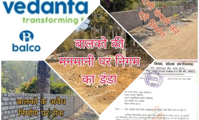 2 फरवरी 2026 को निगम के भवन निर्माण अधिकारी ने वेदांता कंपनी लिमिटेड (बालको) के प्रमुख (प्रशासन) धनंजय मिश्रा को पत्र जारी कर साफ तौर पर कहा था कि बिना अनुमति निर्माण कार्य छत्तीसगढ़ नगर पालिक निगम अधिनियम 1956 (संशोधन 2012) और भूमि विकास नियम 1984 (संशोधन 2015) का सीधा उल्लंघन है। नोटिस में निर्माण कार्य तत्काल बंद करने और तीन दिन के भीतर विधिवत आवेदन व शुल्क जमा करने के निर्देश दिए गए थे, साथ ही चेताया गया था कि आदेश का पालन नहीं होने पर निर्माणाधीन बाउंड्रीवाल को तोड़ने की कार्रवाई की जाएगी और पूरा खर्च कंपनी से वसूला जाएगा।