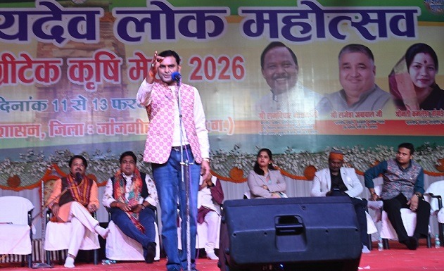 जांजगीर-चांपा । जाज्वल्यदेव लोक महोत्सव एवं एग्रीटेक कृषि मेला 2026 का आयोजन 11 से 13 फरवरी तक जिले के हाईस्कूल मैदान जांजगीर एवं कृषि विज्ञान केन्द्र जर्वे, जांजगीर में आयोजित किया जा रहा है। इसी क्रम में 12 फरवरी को हाई स्कूल मैदान अखिल भारतीय कवि सम्मेलन का आयोजन किया गया। कवि सम्मेलन में सभी कवियों ने अपने प्रसिद्ध गीत, कविताओं से सभी श्रोता गणों का दिल जीत लिया।