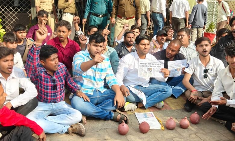 सोना और गुल्लक लेकर NSUI ने किया माशिमं कार्यालय का घेराव