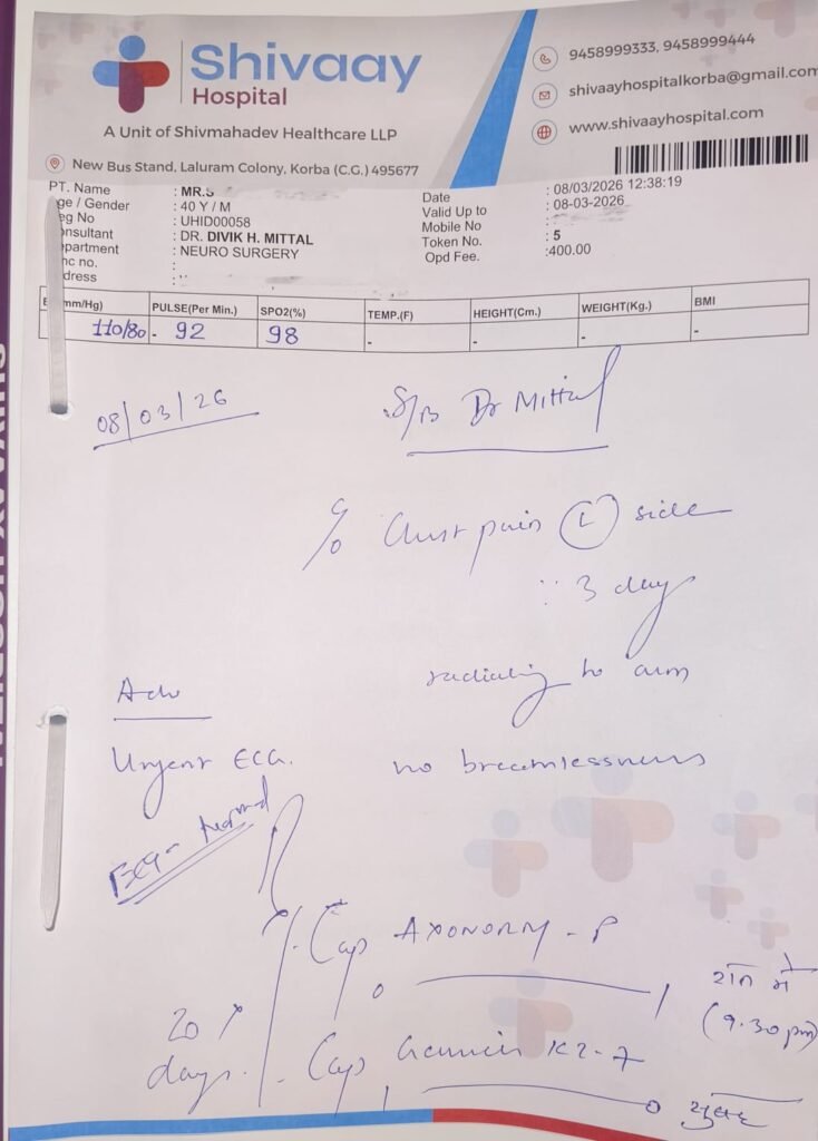 कोरबा। शहर में हाल ही में विवादों के केंद्र में आए “शिवाय हॉस्पिटल” को लेकर एक और बड़ा खुलासा सामने आया है। नर्सिंग होम एक्ट के तहत वैध लाइसेंस मिलने से पहले ही यहां चिकित्सा सेवाएं शुरू कर दी गई हैं। अस्पताल परिसर में न केवल ओपीडी संचालित की जा रही है, बल्कि फार्मेसी और पैथोलॉजी लैब का भी संचालन शुरू कर दिया गया है। 7 मार्च को बहके ही औपचारिक उद्धाटन किया गया है लेकिन 5 मार्च से ही मरीजों को देखकर बाकायदा दवाइयां लिखी जा रही हैं और उनसे परामर्श शुल्क भी लिया जा रहा है।