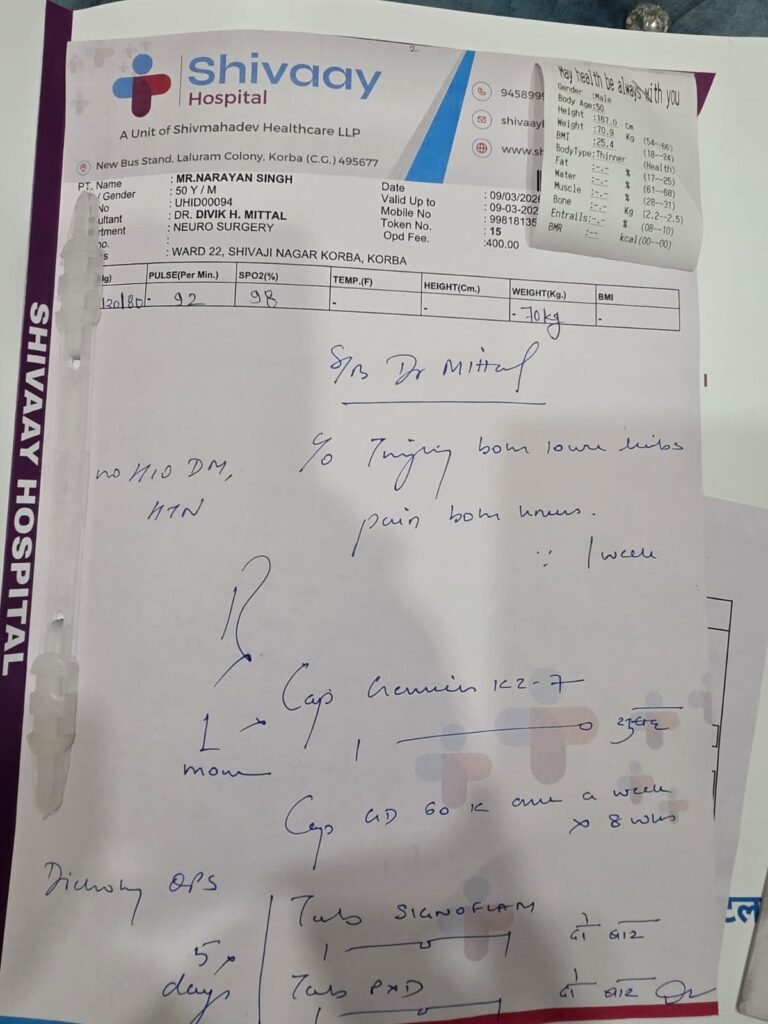 ग्राम यात्रा छत्तीसगढ़ के पास गुरुवार 5 मार्च, रविवार 8 मार्च और सोमवार 9 मार्च को अस्पताल में आए तीन मरीजों की ओपीडी स्लिप मौजूद है। इन मरीजों से 400 रुपये परामर्श शुल्क लेकर डॉक्टर द्वारा दवाइयां लिखी गई हैं।