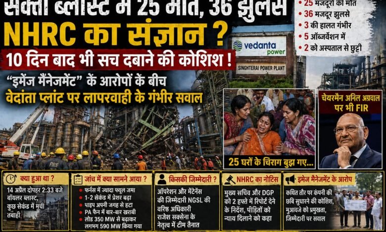 सक्ती ब्लास्ट में 25 मौतें, 36 झुलसे — NHRC का संज्ञान ? : 10 दिन बाद भी सच दबाने की कोशिश ! “इमेज मैनेजमेंट” के आरोपों के बीच वेदांता प्रबंधन पर लापरवाही के गंभीर सवाल