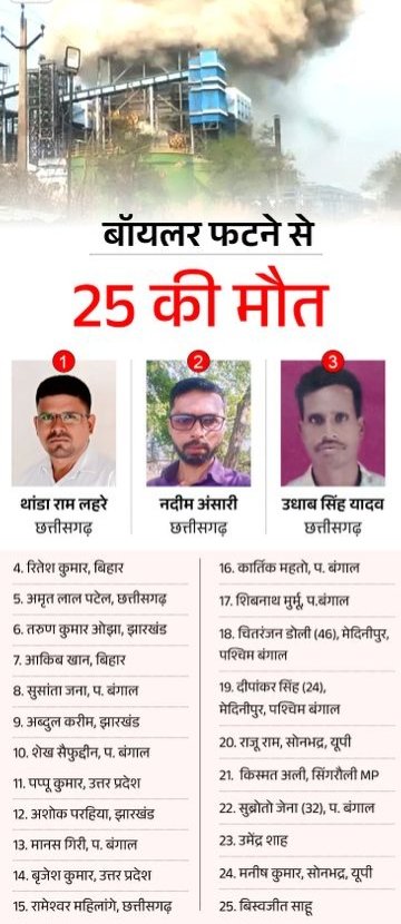 इस हादसे में कुल 36 मजदूर झुलसे थे, जिनमें से कई गंभीर रूप से घायल हैं। तीन मरीजों की हालत अभी भी नाजुक बनी हुई है और पांच मरीजों को डॉक्टरों की निगरानी में रखा गया है।