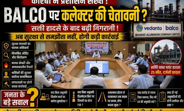 कोरबा में कलेक्टर की सख्त चेतावनी ? सक्ती हादसे के बाद BALCO समेत बड़े उद्योगों पर निगरानी तेज