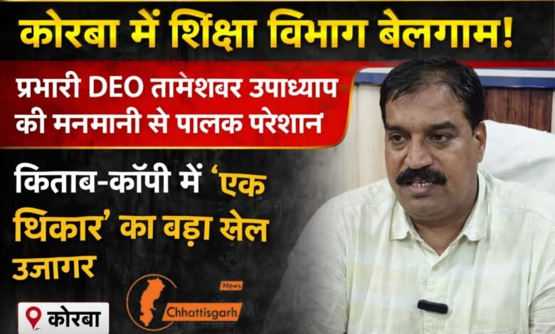 कोरबा में शिक्षा विभाग बेलगाम : प्रभारी DEO तामेश्वर उपाध्याय की मनमानी से पालकों पर आर्थिक मार, किताब-कॉपी में ‘एकाधिकार’ का बड़ा खेल उजागर
