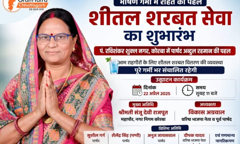 भीषण गर्मी में राहत की पहल : पं. रविशंकर शुक्ल नगर में शीतल शरबत सेवा का शुभारंभ, पूरे गर्मी भर चलेगा वितरण, कल से होगा शुभारंभ…